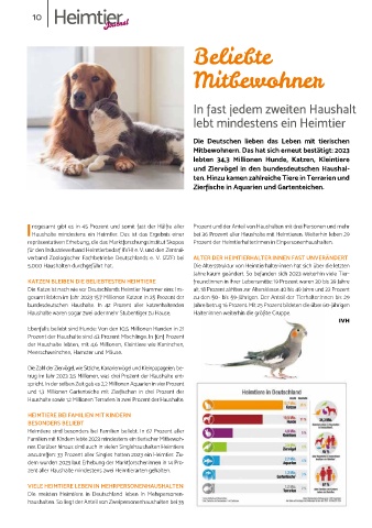 zent aller Haushalte mindestens zwei Heimtierarten gehalten.