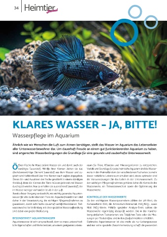 Aquarienwasser ist sehr anspruchsvoll, denn es muss unterschied- Optimales Aquarienwasser ist also mehr als nur Leitungswasser