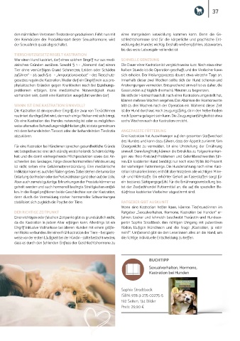 ren Risiko verbunden. Bei einer Frühkastration der Tiere – beispiels- nein?“. Umfassend gibt sie den Leser:innen alles an die Hand, um