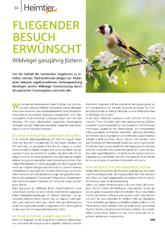 Entwicklung. Das optimale Sommerfutter besteht aus unterschied- Anfang März kehren jedes Jahr die ersten Zugvögel aus dem Süden