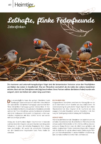 würden, lässt sich bei Zebrafinken wie folgt beschreiben: Ihren Partner wählen die kleinen Federfreunde sehr