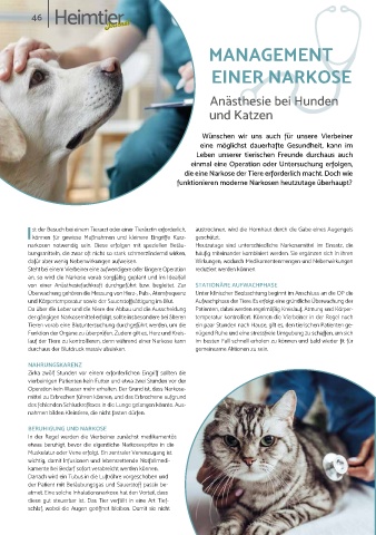lauf der Tiere zu kontrollieren, denn während einer Narkose kann im besten Fall schnell erholen zu können und bald wieder fit für