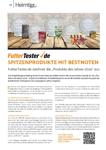 Das Empfehlungsmarketing-Portal FutterTester.de verlieh kürzlich die renommierten Awards für die „Pro-