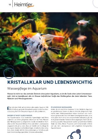 EDie Schaffung optimaler Wasserbedingungen ist die Grundvor- Anders als ein natürliches Gewässer, ist das heimische Aquarium