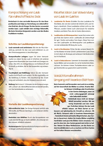 4. Reifung: Nach etwa 6-12 Monaten ist der Kompost ausge- Beim Sammeln und Verwenden von Laub ist es wichtig,
