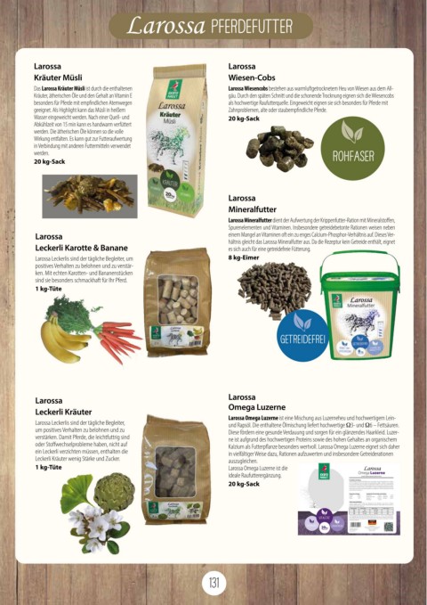 hältnis gleicht das Larossa Mineralfutter aus. Da die Rezeptur kein Getreide enthält, eignet