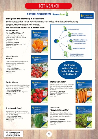 bank. Hochbeet geeignet. mehrfache Ernte bis zum ersten Frost. Für Beete