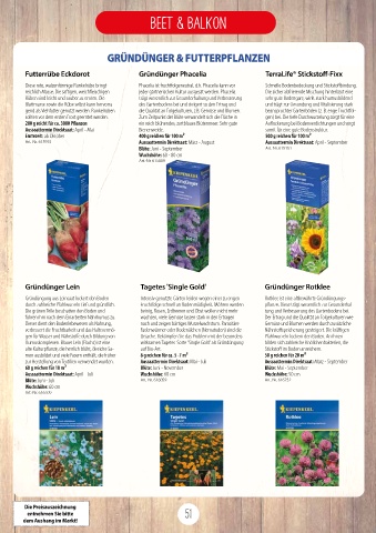 Aussaattermin Direktsaat: April - Juli Wuchshöhe: 60 cm Wuchshöhe: 50 cm