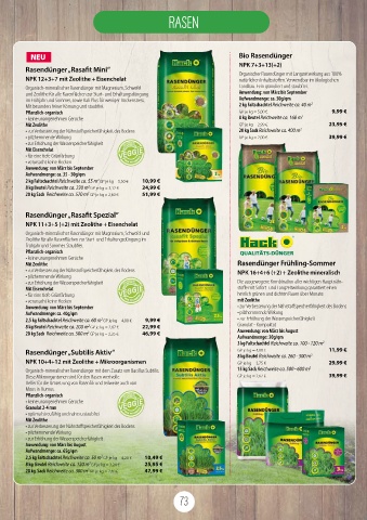 und Zeolithe für alle Rasenflächen zur Start- und Erhaltungsdüngung Anwendung: von März bis September