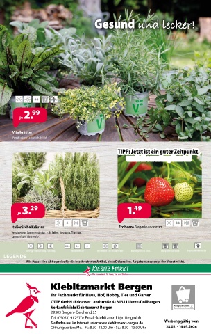 Sie finden uns im Internet unter: www.kiebitzmarkt-bergen.de Werbung gültig vom